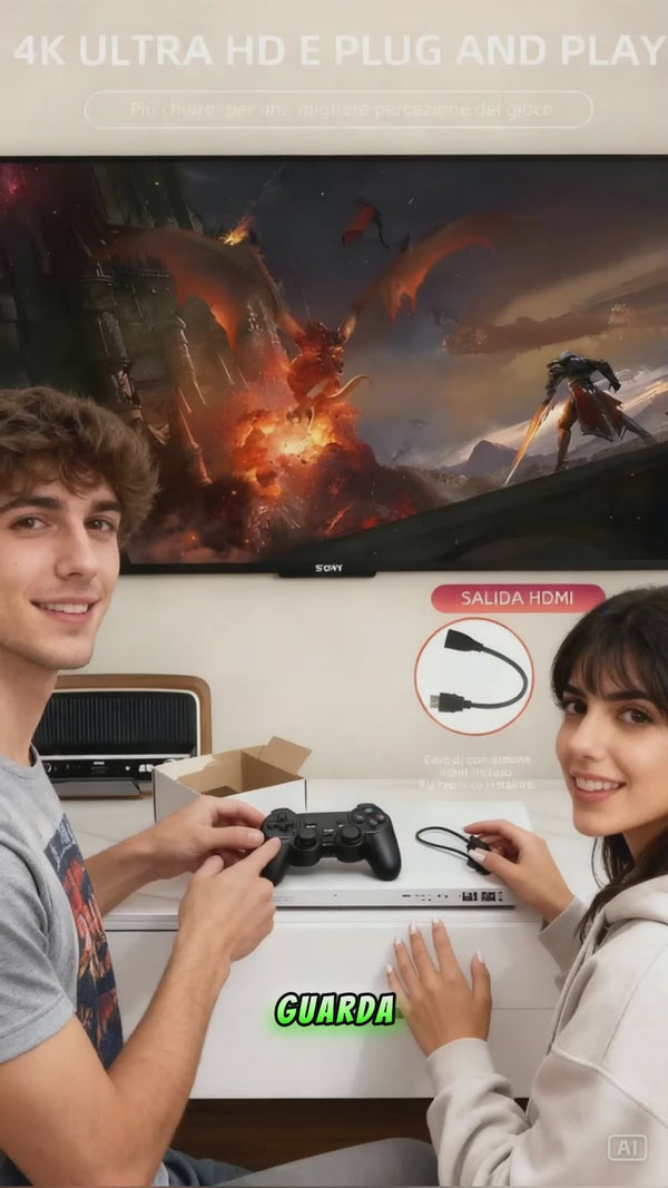 Collega la console alla TV e in pochi secondi sei pronto a giocare — zero installazioni, zero stress.